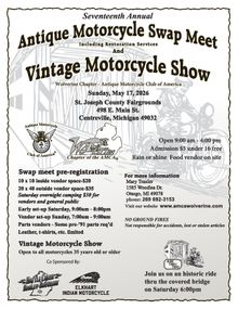 2026 Wolverine Centreville Antique Swap Meet and Vintage Motorcycle Show PDF Click on the Blue "Download" below to download the PDF file. Download "AMCA Centerville 2026_WEB ART.pdf"
